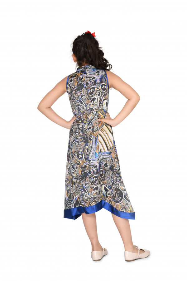 Bold and stylish in its design, this long asymmetrical jacket co-ordinated with a short skirt is perfect to complete the look of a little fashionista.